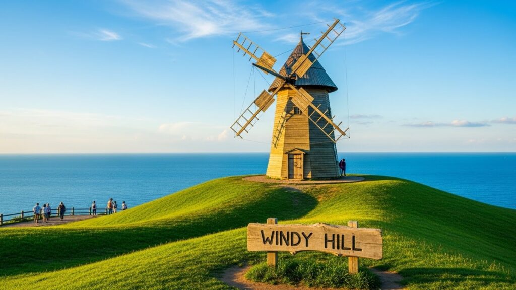 탁 트인 바다를 배경으로 돌아가는 거대한 풍차는 그야말로 장관입니다.