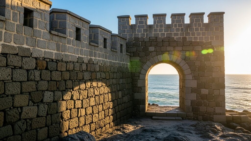 특히 성벽 터널 안에서 바다를 배경으로 찍는 실루엣 사진은 필수 코스예요.