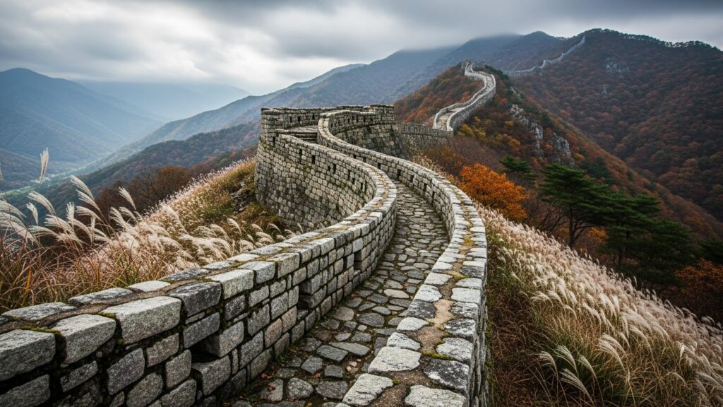 성곽길을 따라 걸으며 억새를 바라보면 마치 사극의 한 장면에 들어온 듯한 착각이 듭니다.