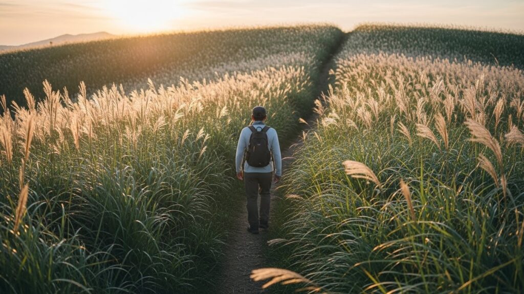 - ✅ 밝은색 옷: 억새가 은빛, 갈색 톤이라 밝은 원색 옷이 사진이 잘 나옵니다.