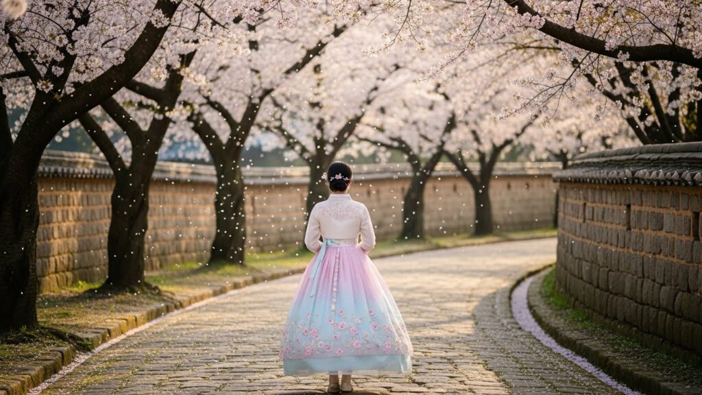 A. 경주는 일교차가 큽니다. 낮에는 더워서 땀이 날 정도지만, 해가 지면 꽤 쌀쌀해요. 얇은 옷을 여러 겹 입는 레이어드 룩을 추천합니다. 그리고 인생샷을 위해 밝은 색(흰색, 연분홍) 옷을 입으세요. 검은 옷은 벚꽃이랑 잘 안 어울려요!