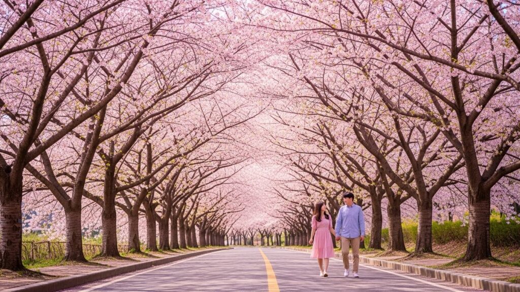 2. 오후 1시: 흥무로 벚꽃 터널 (김유신 장군 묘 가는 길)