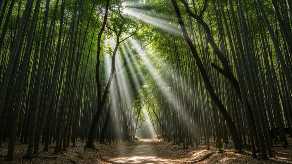 빽빽한 대나무 사이로 비치는 햇살, 일명 ‘틴들 현상’을 목격한다면 그날은 정말 운이 좋은 날입니다.