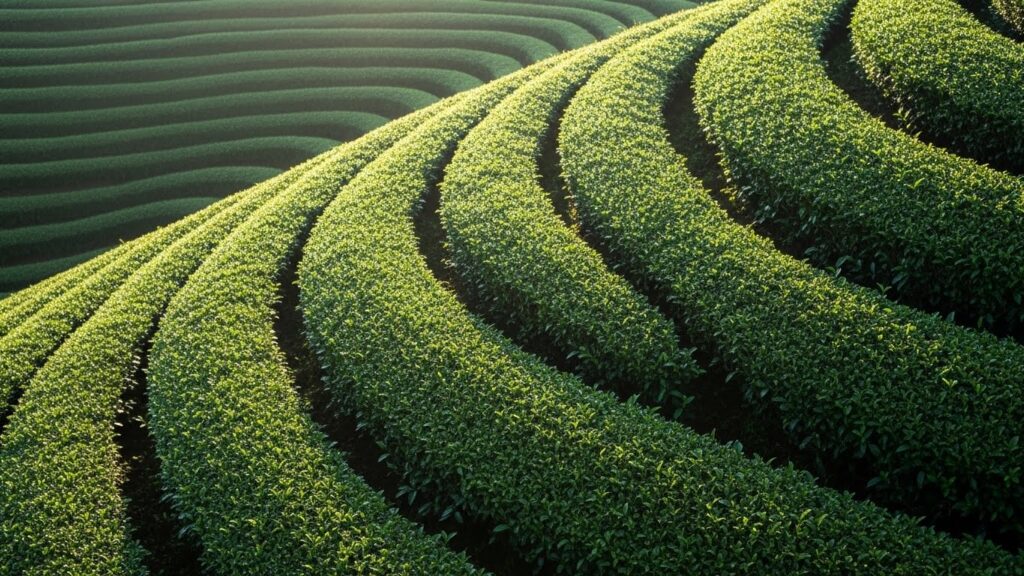 녹차밭의 유려한 곡선이 한눈에 들어오는 지점입니다.