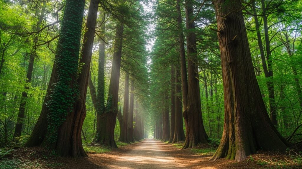 매표소를 지나자마자 시작되는 키 큰 삼나무들의 향연은 마치 다른 세상으로 들어가는 통로 같습니다. 피톤치드가 온몸을 감싸는 기분을 느껴보세요.