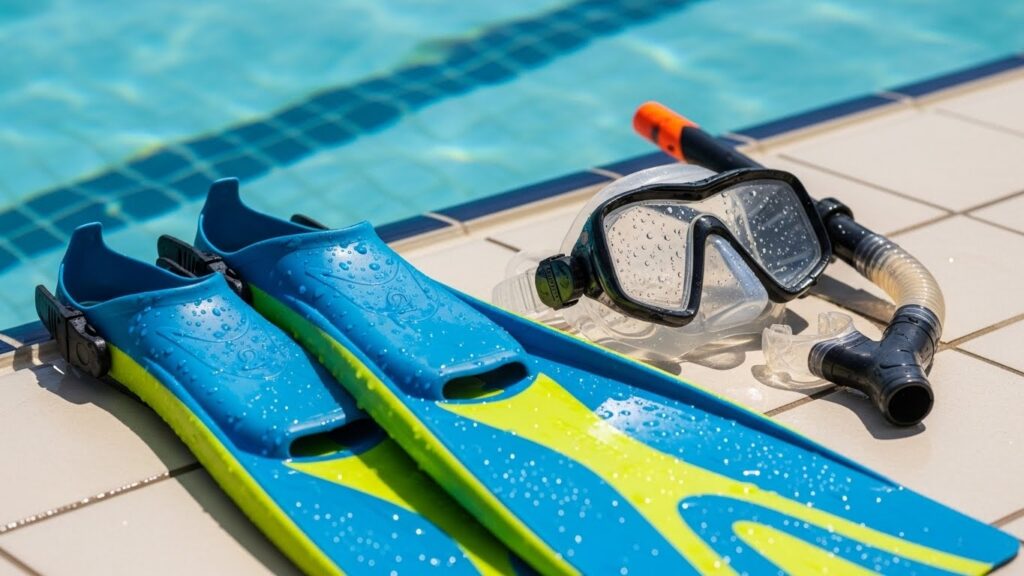 대부분의 풀장에서 마스크, 스노클, 핀(오리발), 슈트 등